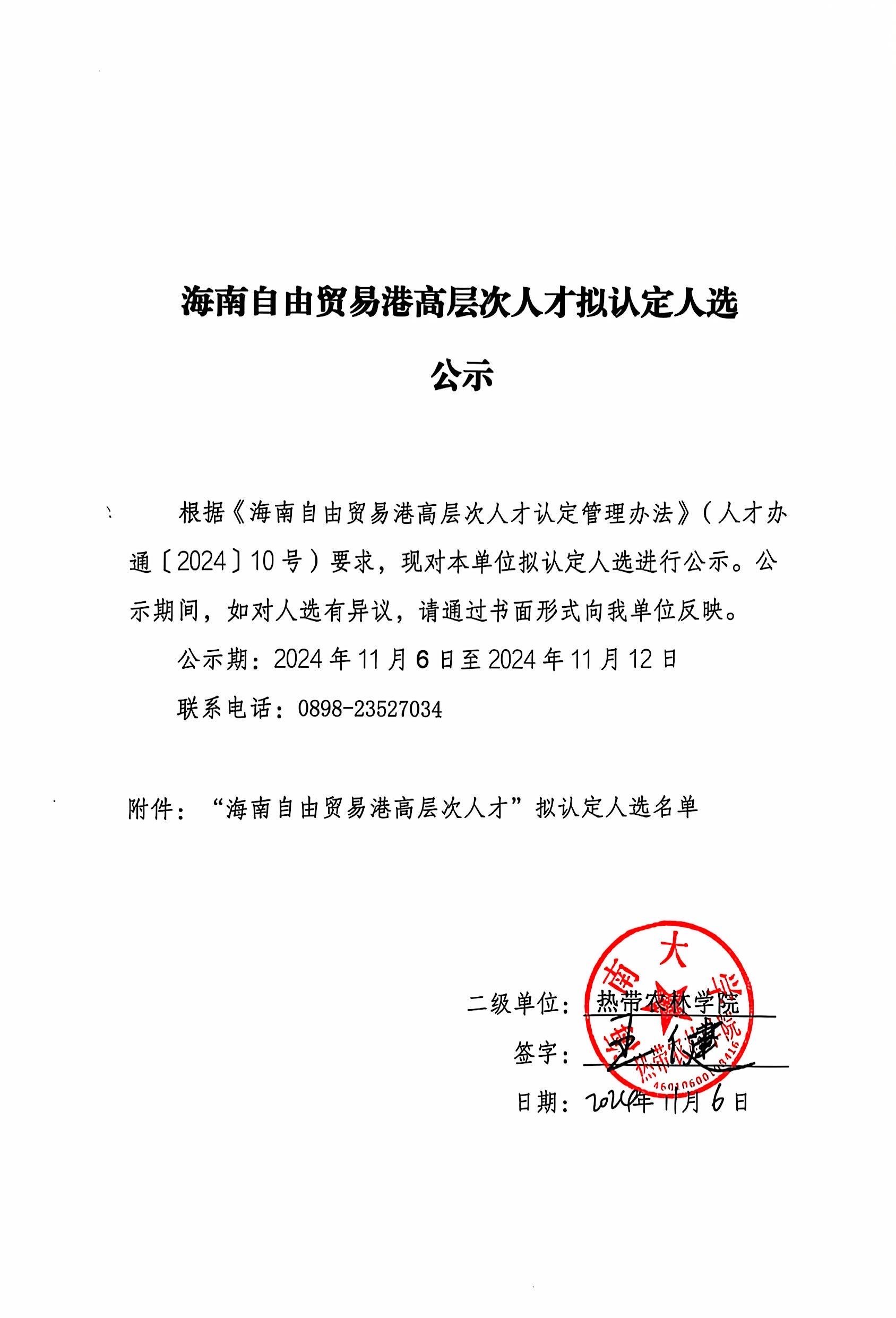 海南自贸港高层次人才拟认定人选公示