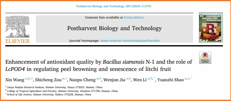 2024年388vip太阳集团李雯教授团队在热带果品采后品质调控领域取得系列成果