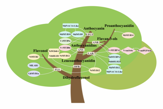在类黄酮家族内部,也存在着激烈的竞争与合作。花青素和黄酮醇就像是两位争夺最受欢迎色素称号的选手,它们共享相同的合成底物,因此在植物体内常常此消彼长。而花青素和原花青素之间,则更像是并肩作战的战友,它们在不同的生理过程中发挥着各自的作用,共同守护着植物的安康(图2)。