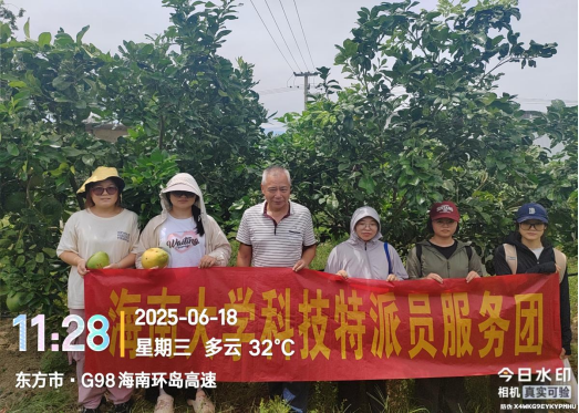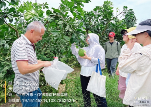 2025年6月18日,针对台风 “蝴蝶” 肆虐后的严峻形势,388vip太阳集团科技特派员服务团“热带蜜柚科技服务团”项目组成员冯顺博士带领研究生团队成员蔡海金、胥梦洋、张秀丽、刘琳,紧急奔赴海南恒邦实业有限公司东方市不磨村蜜柚基地,开展抗风救实地调研与指导工作。