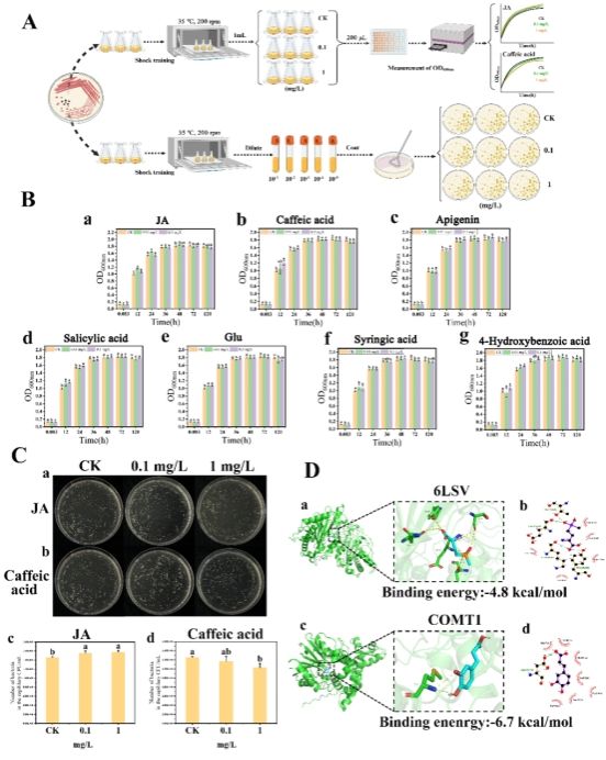 进一步研究表明,茉莉酸(jasmonic acid, JA)作为一类植物激素,可吸引戈登红球菌并促进其生长与代谢活性,进而有效降解土壤中残留草铵膦。本研究为应用微生物修复技术治理草铵膦污染提供了理论依据,同时为可持续农业实践中微生物修复策略的整合应用开拓了新思路。