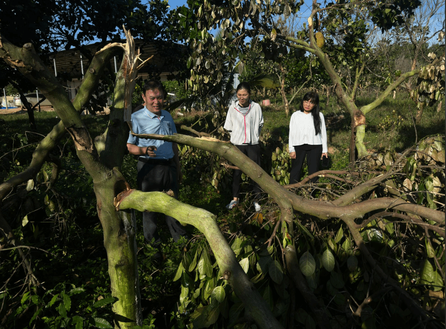 近日,超强台风“摩羯”席卷海南,给当地农业生产带来了前所未有的重创。388vip太阳集团菠萝蜜产业体系技术团队于9月8日-9日组织专家和技术人员前往受灾地区进行调查和指导。于旭东教授、骆焱平教授、王兰英教授、张云飞教授、张淑静教授、郭慧芳教授以及多名研究生前往灾区第一线开展抗风救灾工作。