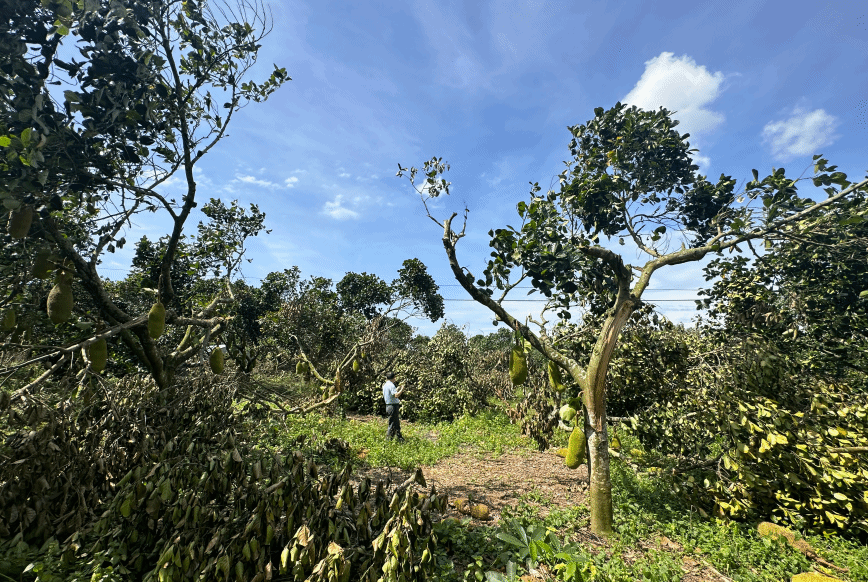 根据调查结果显示,受灾的菠萝蜜果园遍布海南多个主产区。台风过后,菠萝蜜树倒伏、折断,果实大量掉落或腐烂,经济损失惨重。在文昌东路大致坡的一处菠萝蜜基地,损失尤为严重,大部分树体都被台风折断,经过太阳曝晒,树枝萎焉,树叶枯死,经济损失严重。初步估算,本次菠萝蜜受台风影响面积占全省一半以上,果农损失十分严重。
