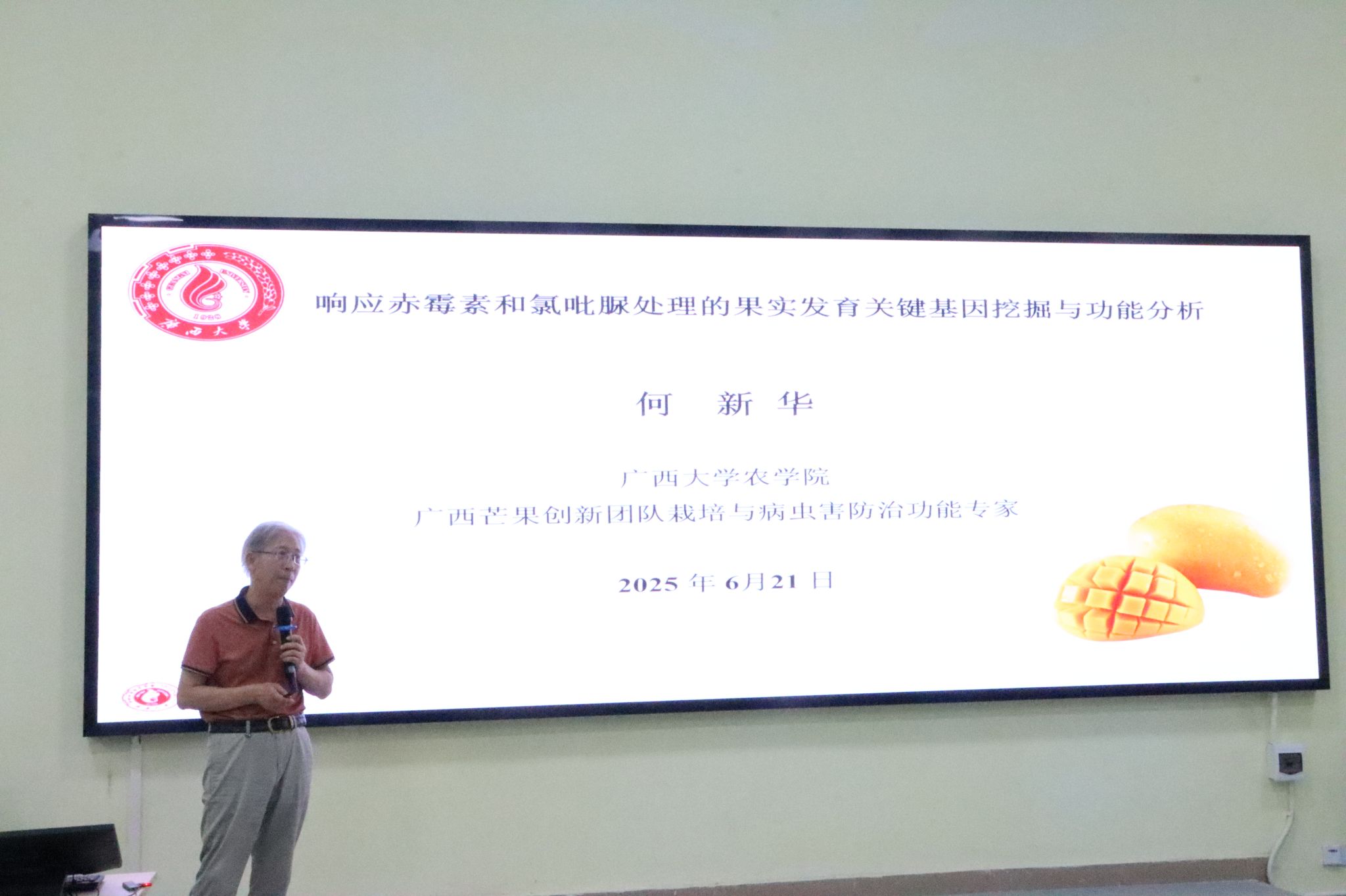 何新华教授作“响应赤霉素和氯吡脲处理的果实发育关键基因挖掘与功能分析”报告