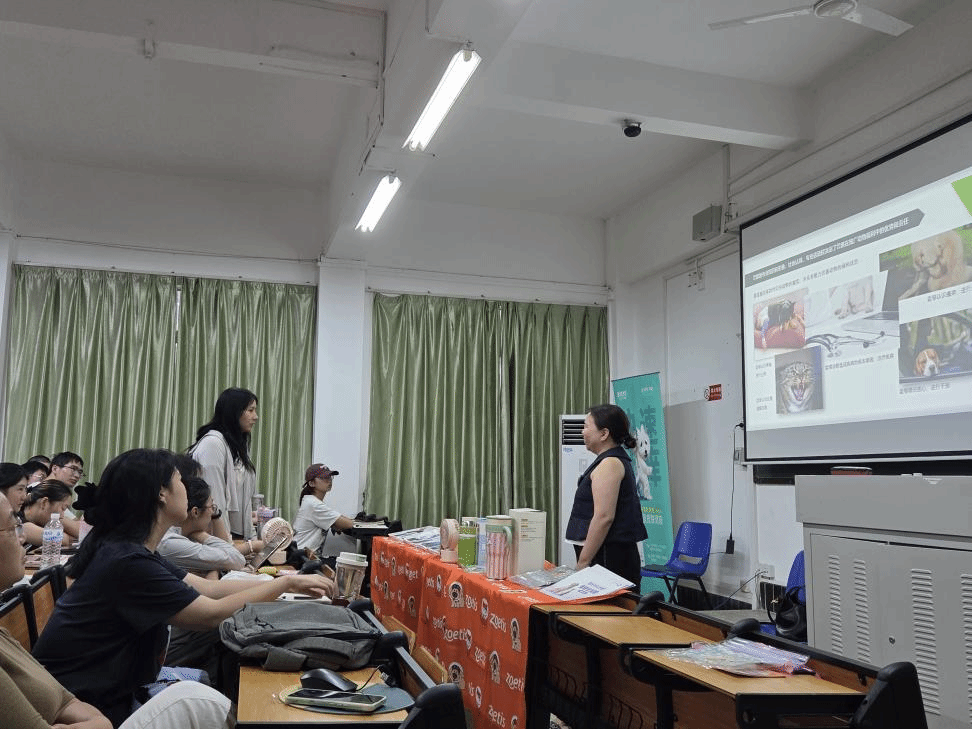 钟健敏还为员工带来了宠物预防医学与动物福利相关的专业知识授课,课上与公司动物医学专业学子进行了充分的互动交流,受到员工们的热烈欢迎。