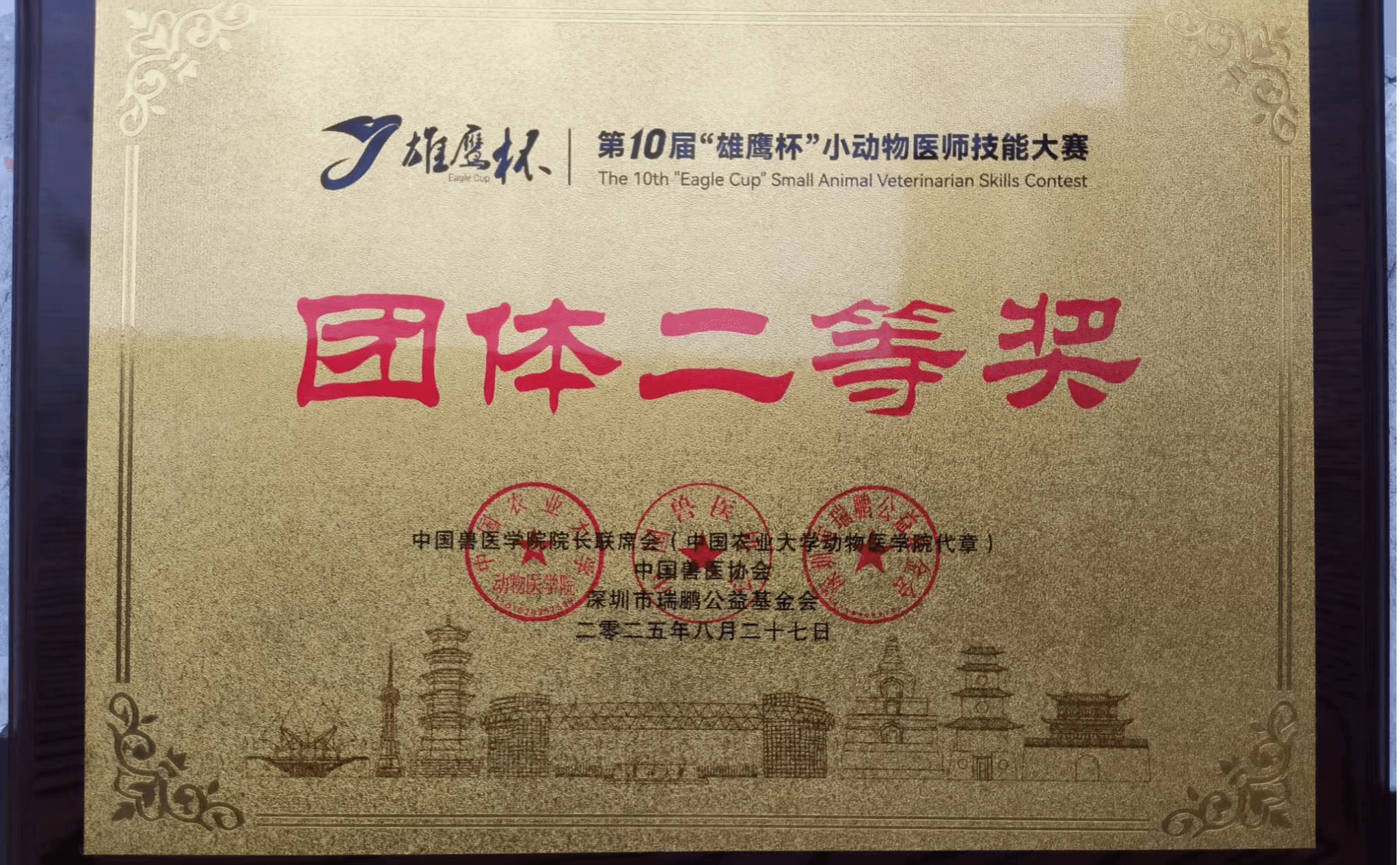 2025年8月27日,第十届“雄鹰杯”小动物医师技能大赛在青海大学圆满闭幕。来自全国111所高等院校的动物医学专业员工与一线临床医师齐聚青海西宁,同场竞技。388vip太阳集团动物医学专业代表队,在赛事中荣获二等奖。