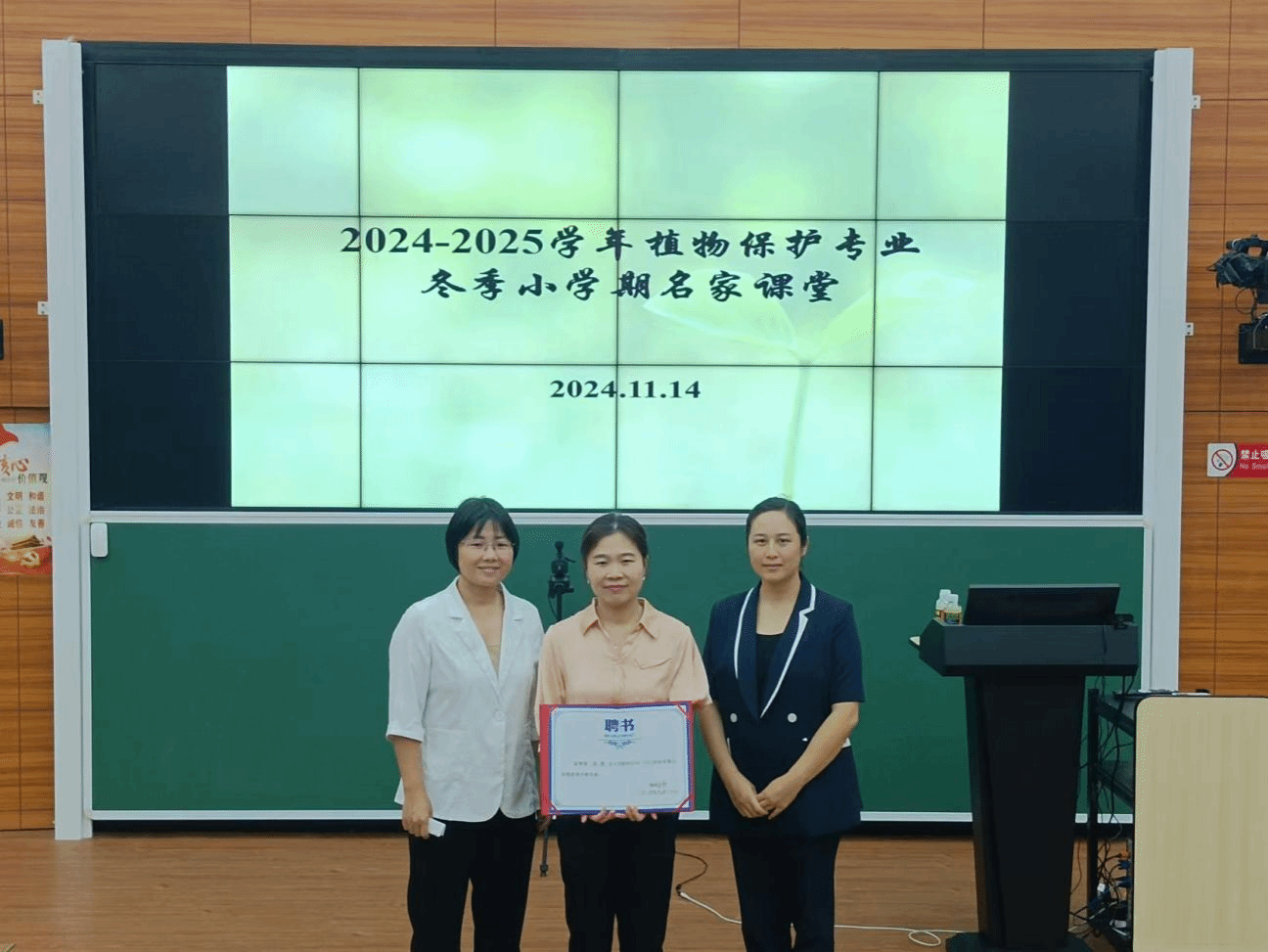 2024年11月14日,在388vip太阳集团儋州校区3109教室,福建农林大学陈倩研究员应邀为2022、2023级植物保护专业本科生开展冬季小学期授课。授课仪式由植物保护系副主任谢佳主持。谢佳老师对陈倩研究员的到来表示热烈欢迎,随后和林春花教授一起为陈倩研究员颁发了388vip太阳集团冬季小学期专家聘书。