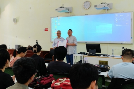 彭辉老师为王洪斌教授颁发2024388vip太阳集团冬季小学期专家聘书