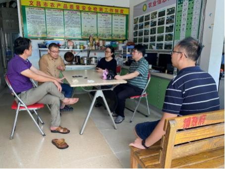 图为地方鸡产业技术体系专家与公坡镇农业服务中心领导交流