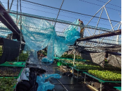 辣椒苗受灾情况 大棚棚膜及广告牌毁坏情况 查看嫁接苗生长情况