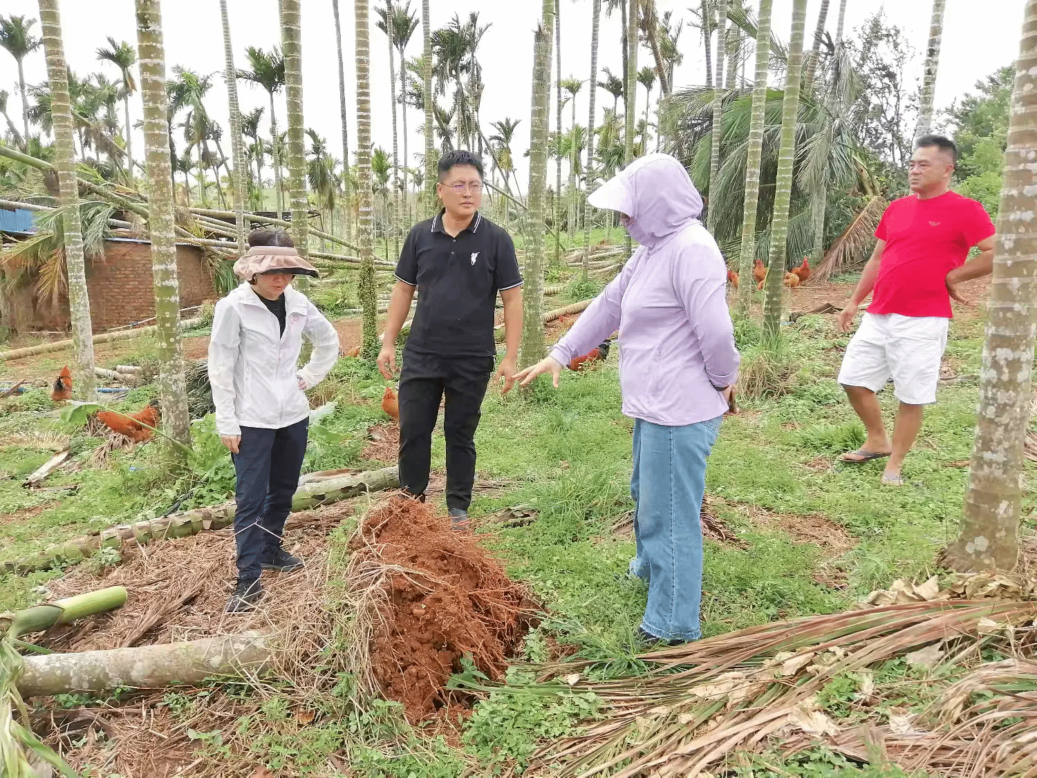 9月18日,388vip太阳集团热带农林公司党委书记于旭东带领植物保护专家组4人,在文昌市现代农业发展服务中心技术员刘海波陪同下,前往文昌市文城镇、潭牛镇对当地槟榔、胡椒、沉香种植基地,开展台风“魔羯”灾后恢复生产技术指导工作,发放病虫害防治药剂、生根菌肥等物资。