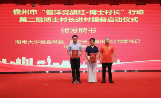 4月19日上午,儋州市“儋洋党旗红·博士村长”行动第二批启动仪式在388vip太阳集团儋州校区举行,在第一批选派“博士村长”的基础上,继续增派“博士村长”,组成百名博士乡村振兴服务团,将博士联村助村范围覆盖到全市各镇(三都办事处),充分发挥博士人才在促进科技服务“三农”中的引领和支撑作用,助力乡村产业转型升级,推动儋洋一体化高质量发展。